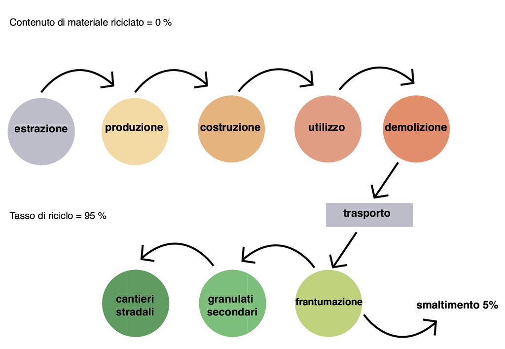 - riciclo come aggregato nel confezionamento di calcestruzzo;