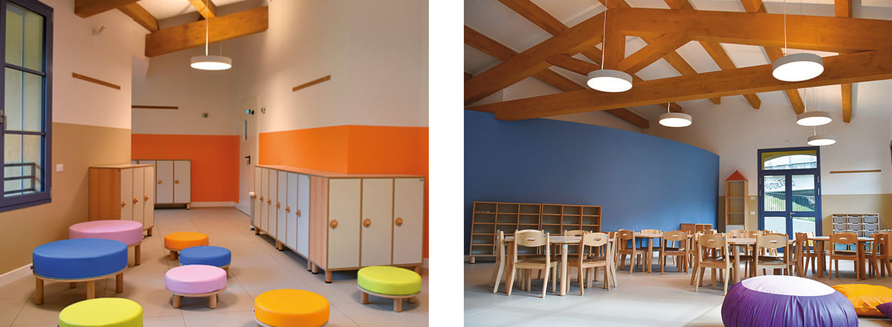 Dall’aula attività libere è possibile accedere alle due classi dell’infanzia, progettate in modo da consentire un uso vario del locale: lo spazio architettonico può essere organizzato a seconda delle necessità didattiche e pedagogiche.